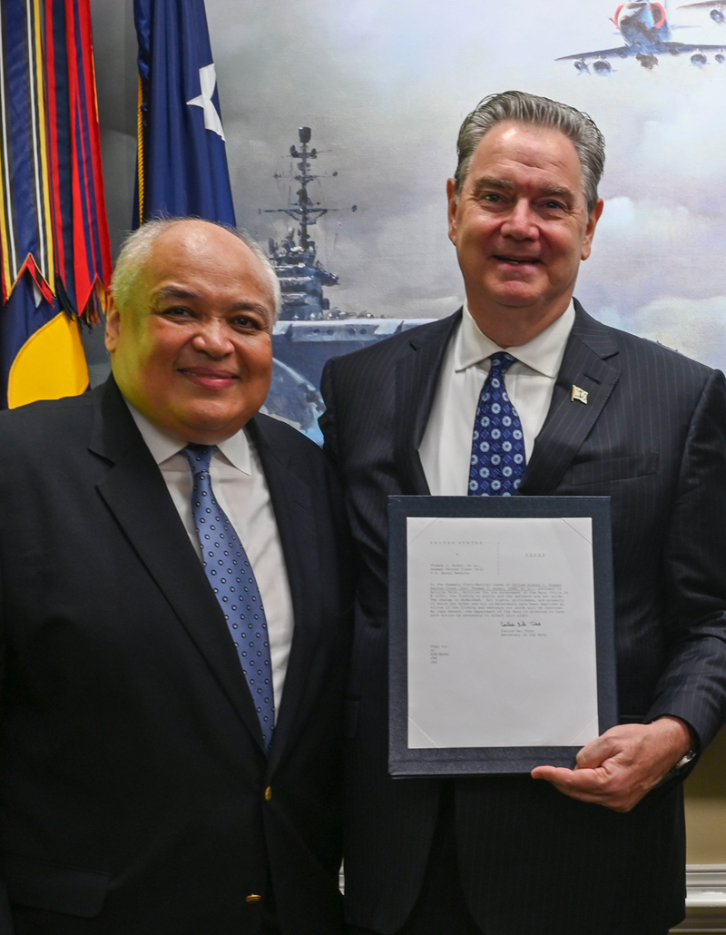 I’d like to thank Secretary Del Toro who, when presented early on with my developing concerns about the Port Chicago courts-martial, told me to follow the facts and the law wherever it took us, without fear or favor. You, Carlos, are a fearless leader of integrity with whom I was so proud to serve. As 78th Secretary of the Navy, you lived by the adage that “it is never too late to do the right thing.” And you did just that for the Port Chicago sailors.